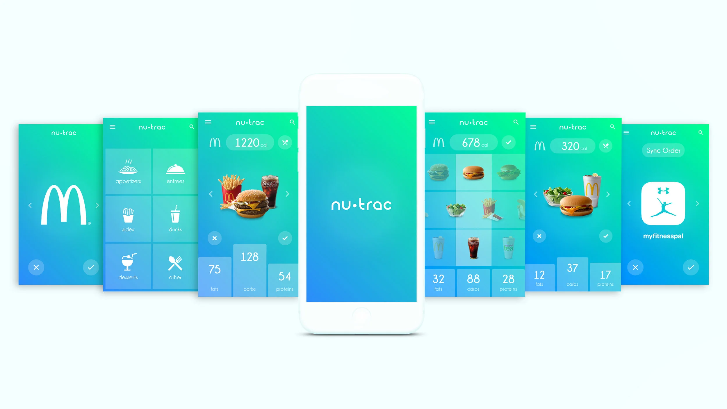 Nu•trac is an app I concepted and designed for a UI/UX class taken at DesignLabs. From the beginning of the course we learned how to define a problem using a variety of techniques providing valuable insight for the ideation phase. In this phase, brainstorming and a collection of ideas are developed into potential solutions to the problem. Once the best solution is determined, prototyping and testing begin to ensure a user friendly experience and interface. For this class, I decided to tackle a calorie/nutrition awareness and management solution for consumers, to conveniently assist them before, during or after purchasing food and beverages from popular chains. The result was a smart device app with up-to-date details of menu items at popular locations, allowing users to make informed choices and purchases and keep track of their calories, carbs, fats and protein counts. Featuring location tracking, nu•trac prompts a user to open and use the app when they are nearby a verified location. Other nu•trac app features include an easy edit meal plan, a menu items filter, calorie and nutrition limits, and data syncing to other popular health and nutrition apps such as MyFitnessPal and MyPlate. I also designed a landing page for users to read more information about nu•trac and its features and drive app store downloads.